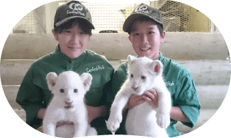 ホワイトタイガーがこんなに近くでみれるの??餌はやっぱりお肉かな??憧れのホワイトタイガーの飼育員さんになってみよう!!