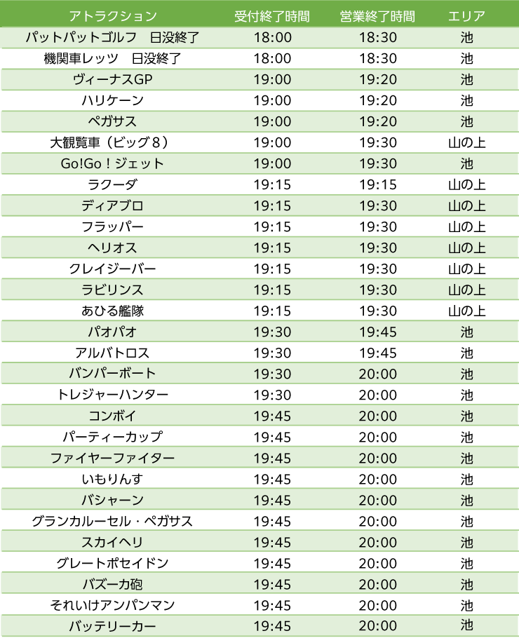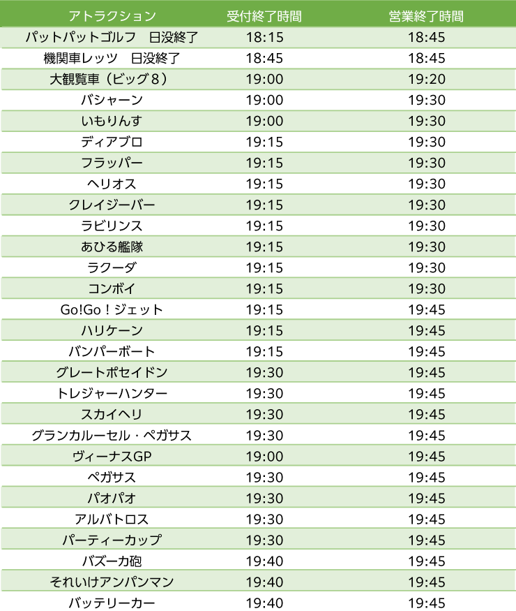 ※アトラクション待ち時間発生により、受付終了時間が早まる場合があります。