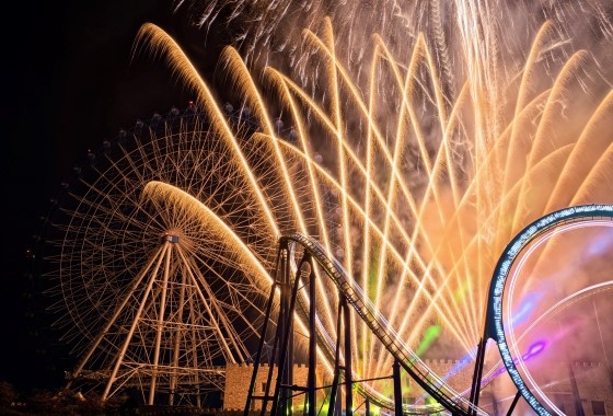 ナイター花火とコースターとの光の共演をイメージした蓄光タイプのデザインで、暗闇にヴィーナスGPのループが浮かび上がります!