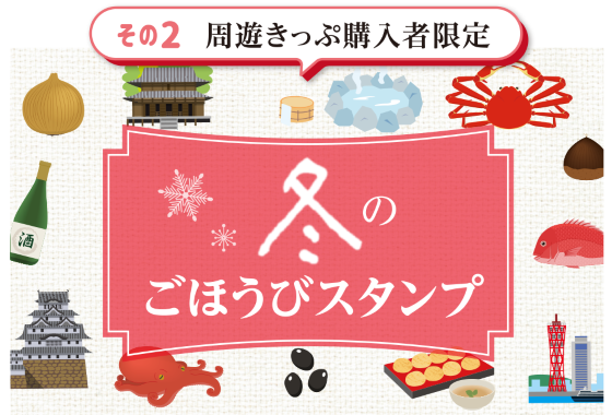 | 【お問合せ】 | WESTERスタンプラリー事務局 10:00~17:00 TEL.06-6131-9332 ※お電話の際は「冬のごほうび旅キャンペーンについて」とお申し出ください |