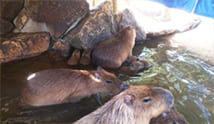 のほほんと温泉に入るカピバラに、誰もが癒されます。
